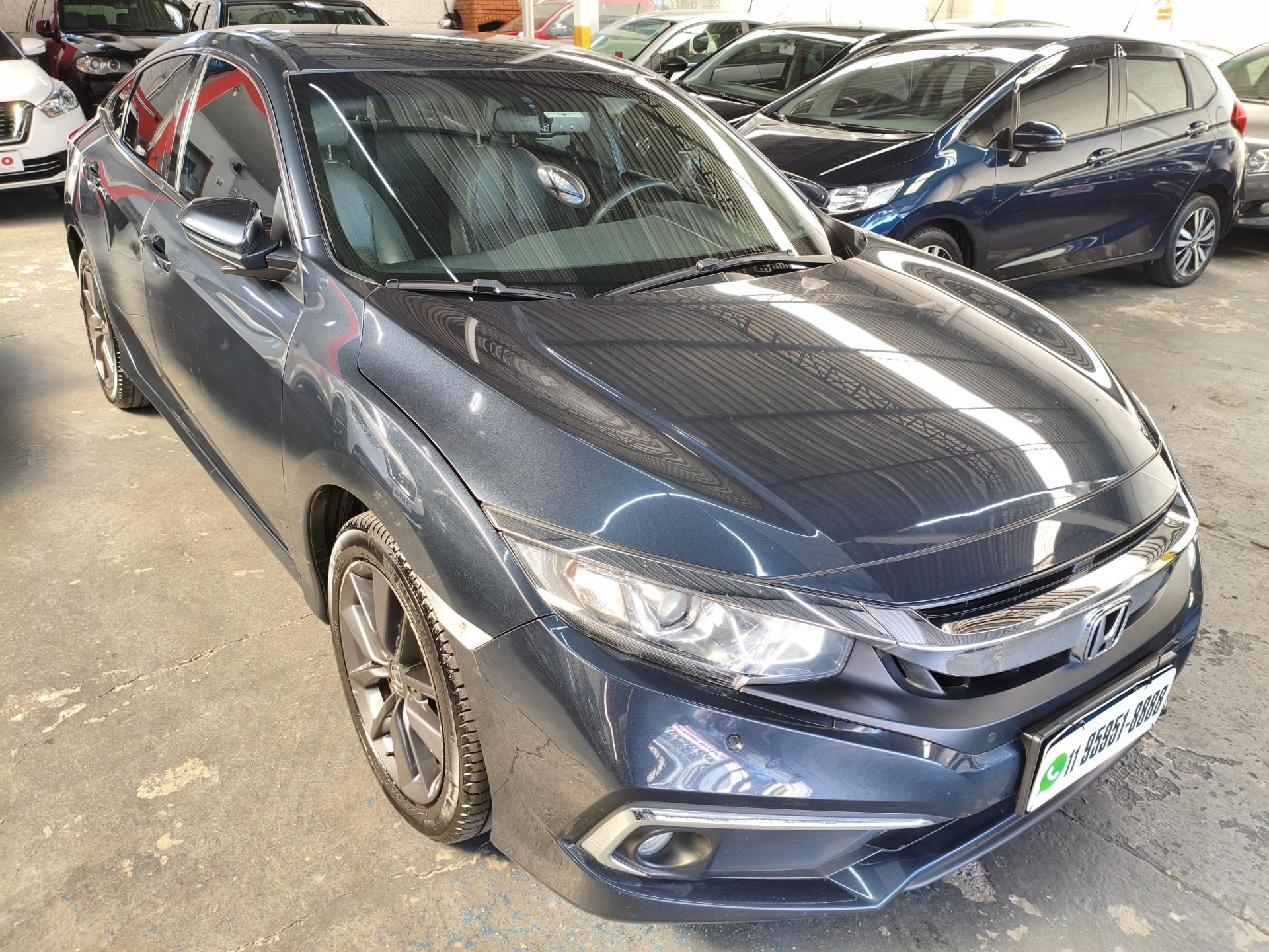 HONDA CIVIC EXL 2.0 FLEX AUTOMATICO DE ANO 2020/2020, NA COR AZUL. placas iniciais g, manual do proprietário, chave reserva, completo, chave keyless® (abertura e partida do carro sem contato com a chave), estofamento em couro, ar condicionado digital, direção elétrica, vidros elétricos 4 portas, trava elétrica, retrovisores elétricos, porta-malas elétrico, alarme a distância (original), ar quente, térmico traseiro, rodas de liga leve, faróis de milha, freios abs, controle de estabilidade, 8 (oito) airbags (motorista, passageiro, laterais, cortinas dianteiras e traseiras), computador de bordo, piloto automático, sensor de estacionamento traseiro, central multimídia, gps, câmera de ré, bluetooth™, controle de som no volante, banco do motorista e volante com regulagem de altura, encosto de cabeça traseiro, parachoques / retrovisores / maçanetas na cor, retrovisores com setas, Financio em até 60x. Sujeito análise pela nossa página. Confira!